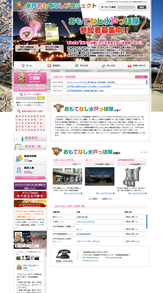 おもてなし水戸っぽ隊様administration 公共情報発信関連 水戸商工会議所様 保守管理 Webデザイン HTMLコーディング オリジナルウェブシステム開発 http://mito.inetcci.or.jp/omotenashi/ 制作実績一覧へ戻る