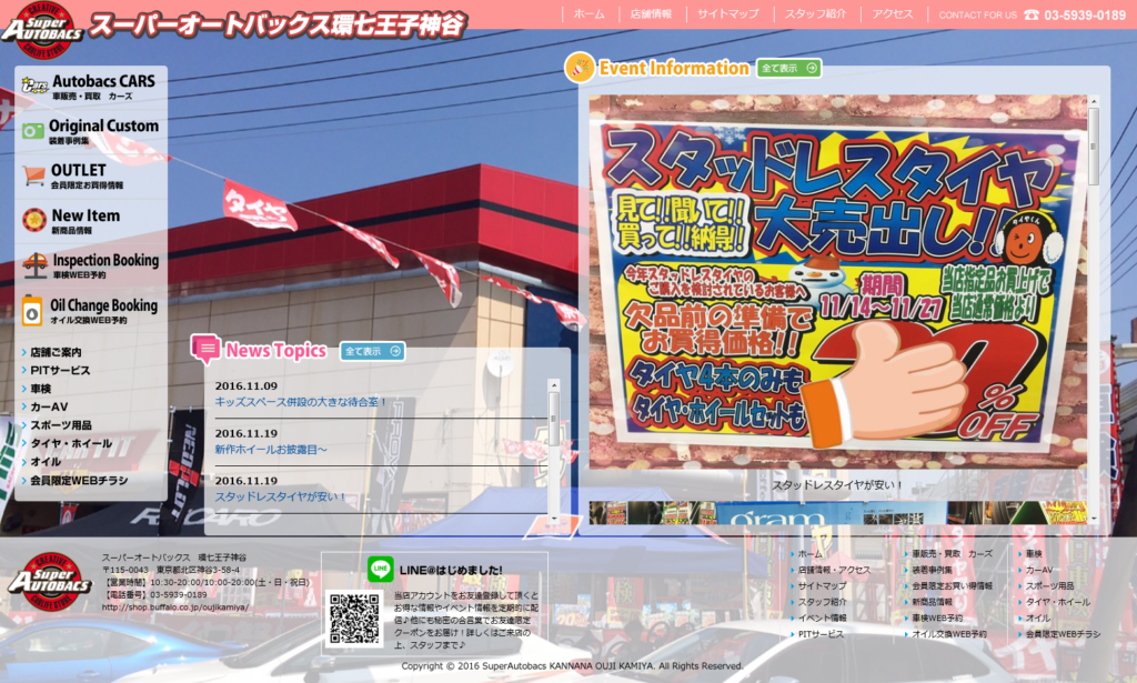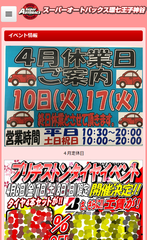 オートバックス関連 スーパーオートバックス王子神谷様 ABシステムソリューション様 保守管理 Webデザイン Webデザインリニューアル HTMLコーディング レスポンシブコーディング オリジナルウェブシステム開発 http://sa-oujikamiya.buffalo.co.jp/ スマートフォン表示 スマートフォン最適化の状態で見る