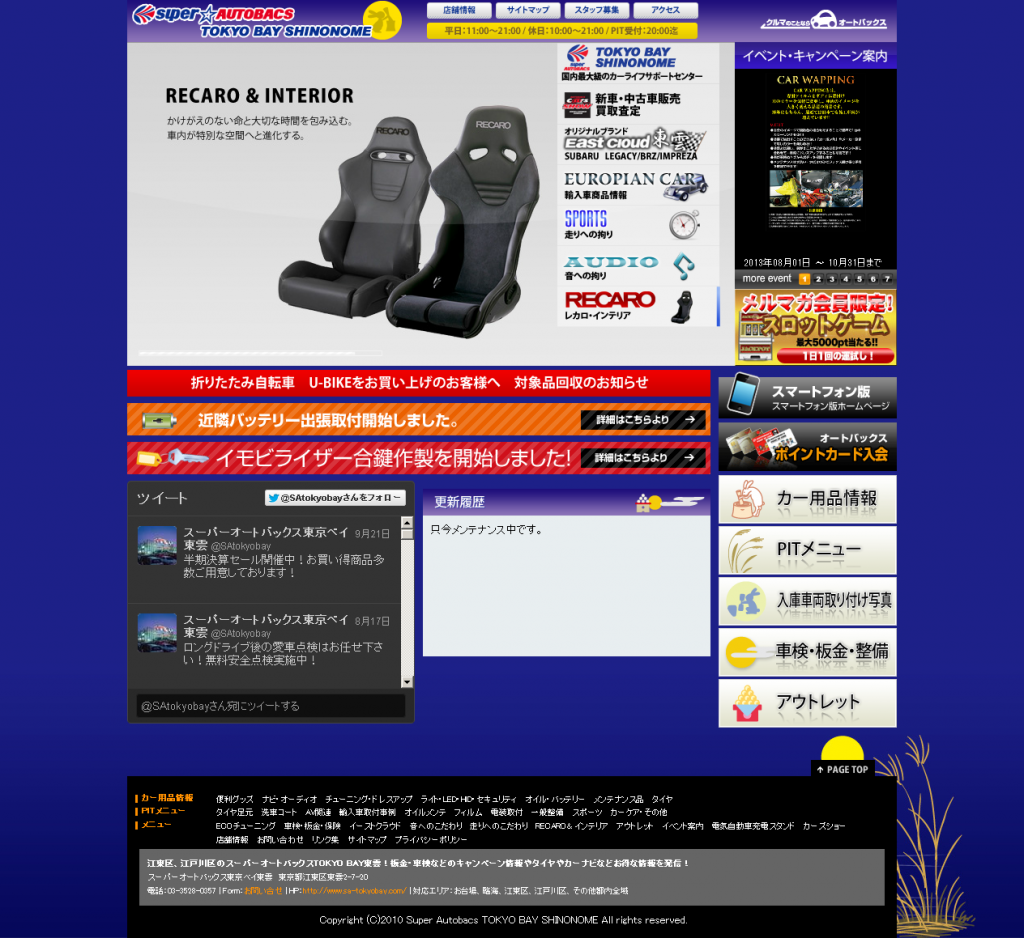 オートバックス関連 スーパーオートバックス東京ベイ東雲 様 ABシステムソリューション様 保守管理 Webデザイン Webデザインリニューアル HTMLコーディング オリジナルウェブシステム開発 http://www.sa-tokyobay.com/