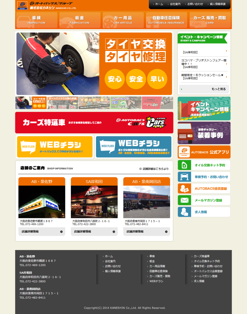 株式会社カネシン様autobacs オートバックス関連 ABシステムソリューション様 保守管理 Webデザイン HTMLコーディング レスポンシブコーディング オリジナルウェブシステム開発 http://autobacs-happy.com/ スマートフォン表示 スマートフォン最適化の状態で見る 制作実績一覧へ戻る