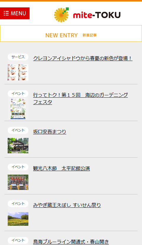 mite-TOKU様etc その他 保守管理 Webデザイン HTMLコーディング レスポンシブコーディング オリジナルウェブシステム開発 http://mitetoku.jp/ スマートフォン表示 スマートフォン最適化の状態で見る 制作実績一覧へ戻る