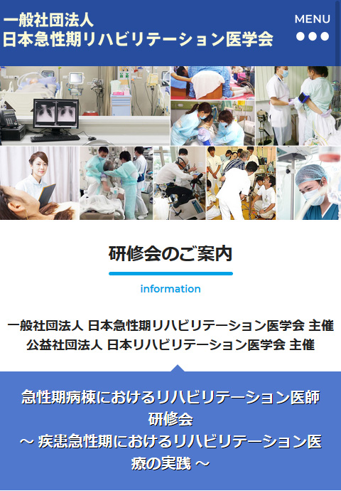 その他 一般社団法人 日本急性期リハビリテーション医学会様 保守管理 Webデザイン HTMLコーディング レスポンシブコーディング http://jsarm.or.jp/ スマートフォン表示 スマートフォン最適化の状態で見る