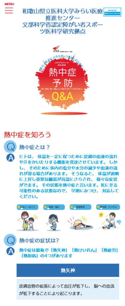 パラアスリートのための熱中症予防Q&Aサイト様medical 医療・病院関連 Webデザイン HTMLコーディング レスポンシブコーディング スマートフォン対応ページ https://nechusho-yobo.com/ スマートフォン表示 スマートフォン最適化の状態で見る 制作実績一覧へ戻る