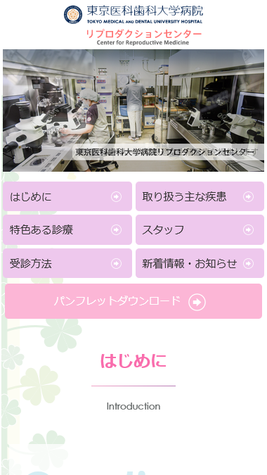 東京医科歯科大学病院 リプロダクションセンター様medical 医療・病院関連 Webデザイン CMS レスポンシブコーディング スマートフォン対応ページ スマートフォン表示 スマートフォン最適化の状態で見る 制作実績一覧へ戻る