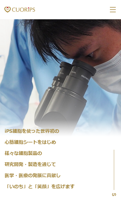 iPS細胞を使った世界初の心筋細胞シートをはじめ様々な細胞製品の研究開発・製造を行っているCuorips様のWEBサイトの制作を行わせていただきました。