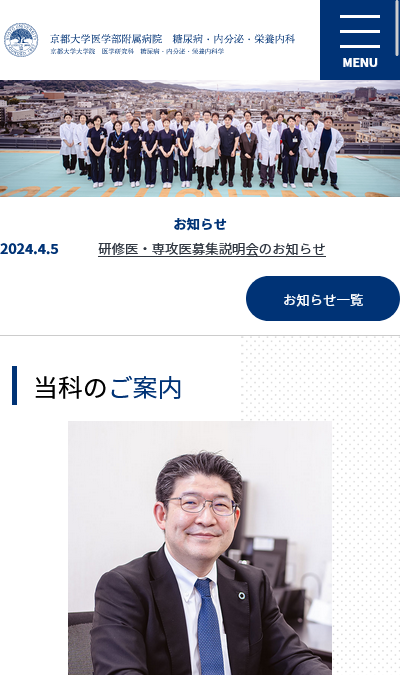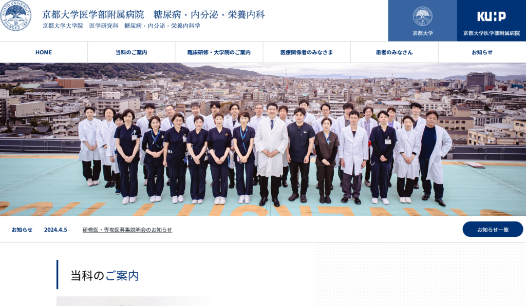 京都大学医学部附属病院 糖尿病・内分泌・栄養内科 ・京都大学大学院 医学研究科 糖尿病・内分泌・栄養内科学様のホームページリニューアルを行わせて頂きました。