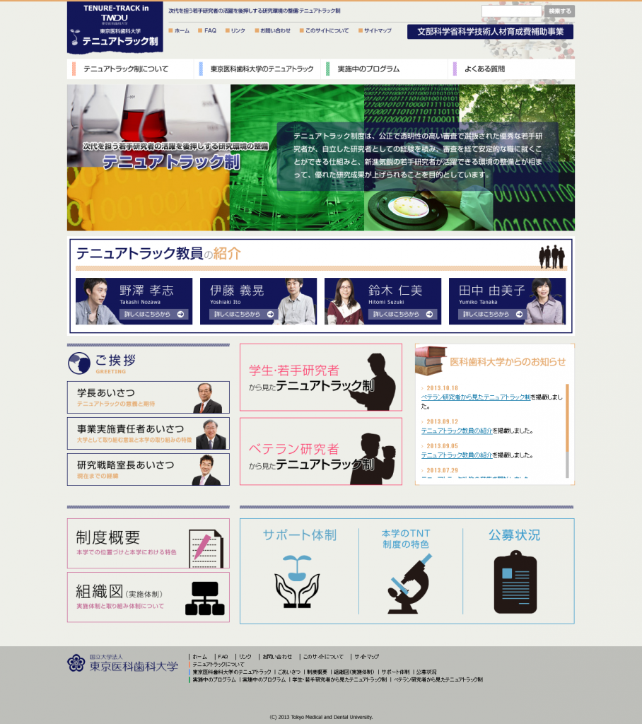 東京医科歯科大学 テニュアトラック制様medical 医療・病院関連 東京医科歯科大学 様 保守管理 Webデザイン HTMLコーディング http://www.tmd.ac.jp/cmn/tenu/ 制作実績一覧へ戻る
