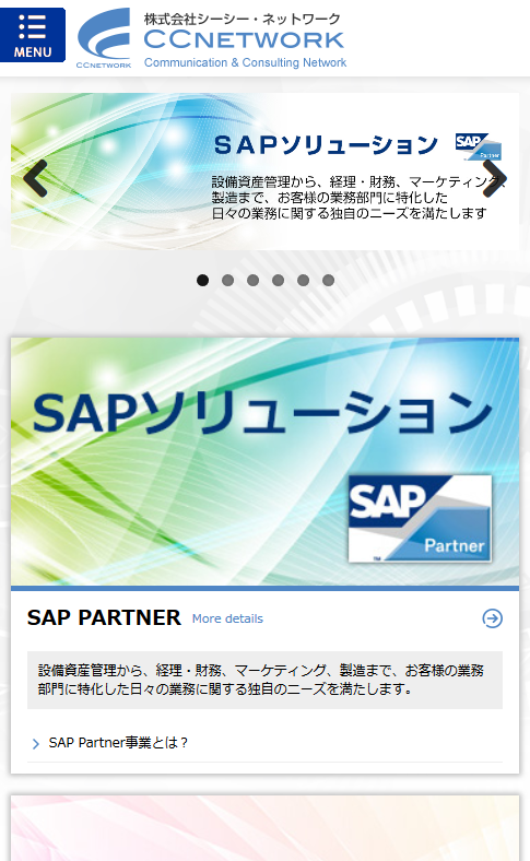 サービス業関連 株式会社シーシー・ネットワーク 様 保守管理 Webデザイン Webデザインリニューアル HTMLコーディング レスポンシブコーディング http://www.ccnet.co.jp/ スマートフォン表示 スマートフォン最適化の状態で見る