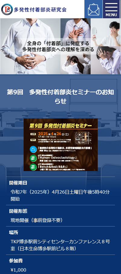 WORKS 制作実績 HOME 制作実績 多発性付着部炎研究会 多発性付着部炎研究会 クライアント 多発性付着部炎研究会 URL http://plaza.umin.ac.jp/~polyenthesitis/ サイトタイプ 医療系サイト 作業内容 design cording responcive 一覧へ戻る 関連実績 東京科学大学病院 総合教育研修センター 医療系サイト 聖マリアンナ医科大学 代謝・内分泌内科 医療系サイト 東京科学大学病院 消化器内科 医療系サイト CONTACT ホームページ制作に関するお悩みがある方はお気軽にご相談ください。 あああああああああああああああああああああああああああああああああああああああああああああ お問い合わせ ご相談やお見積もりご希望の方向けに、メールでのお問い合わせも承っております。こちらのフォームからお問い合わせください。