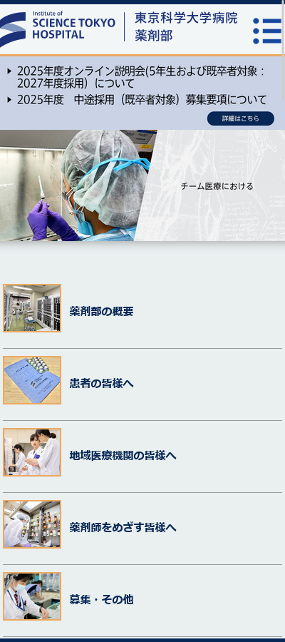 WORKS 制作実績 HOME 制作実績 東京科学大学 薬剤部 東京科学大学 薬剤部 クライアント 東京科学大学 薬剤部 URL http://www.tmd.ac.jp/medhospital/medicine/ サイトタイプ 医療系サイト 作業内容 design cording responcive 一覧へ戻る 関連実績 東京科学大学 疾患バイオリソースセンター 医療系サイト 茨城県立こころの医療センター 医療系サイト 東京科学大学病院 心臓血管外科 医療系サイト CONTACT ホームページ制作に関するお悩みがある方はお気軽にご相談ください。 あああああああああああああああああああああああああああああああああああああああああああああ お問い合わせ ご相談やお見積もりご希望の方向けに、メールでのお問い合わせも承っております。こちらのフォームからお問い合わせください。