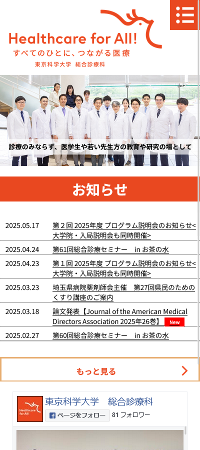 WORKS 制作実績 HOME 制作実績 東京科学大学 医学部附属病院 総合診療医学 総合診療科 東京科学大学 医学部附属病院 総合診療医学 総合診療科 クライアント 東京科学大学 医学部附属病院 総合診療医学 総合診療科 URL http://www.tmd.ac.jp/grad/fmed/ サイトタイプ 医療系サイト 作業内容 design cording responcive 一覧へ戻る 関連実績 東京科学大学病院 呼吸器外科 医療系サイト 東京科学大学 心臓外科医 荒井 裕国 医療系サイト 医療法人光風会 回春荘病院 医療系サイト CONTACT ホームページ制作に関するお悩みがある方はお気軽にご相談ください。 あああああああああああああああああああああああああああああああああああああああああああああ お問い合わせ ご相談やお見積もりご希望の方向けに、メールでのお問い合わせも承っております。こちらのフォームからお問い合わせください。