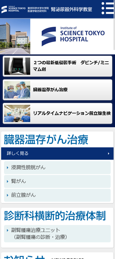 WORKS 制作実績 HOME 制作実績 東京科学大学 腎泌尿器外科学教室 東京科学大学 腎泌尿器外科学教室 クライアント 東京科学大学 腎泌尿器外科学教室 東京科学大学 URL http://www.tmdu.tokyo/ サイトタイプ 医療系サイト 作業内容 manage design cording responcive 一覧へ戻る 関連実績 医療法人光風会 回春荘病院 医療系サイト 公益社団法人 日本リハビリテーション医学会 医療系サイト 東京科学大学病院 総合教育研修センター 医療系サイト CONTACT ホームページ制作に関するお悩みがある方はお気軽にご相談ください。 あああああああああああああああああああああああああああああああああああああああああああああ お問い合わせ ご相談やお見積もりご希望の方向けに、メールでのお問い合わせも承っております。こちらのフォームからお問い合わせください。